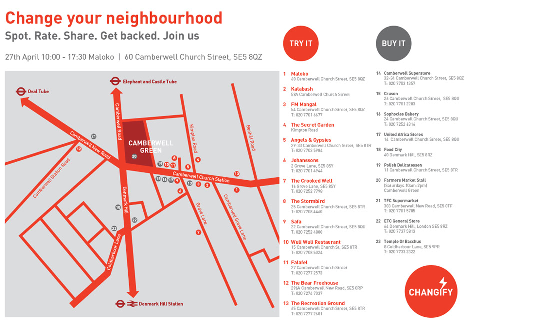 After piloting our Changify neighbourhood events across neighbourhoods in London, Barcelona, Hamburg, Zurich, Sheffield we have innovated a unique hyper-local loyalty program that ties up local retailers to the goals and outcomes of local communities seeking change.